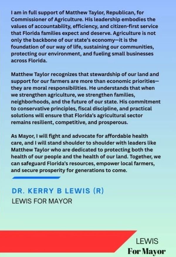 Paid for by Matthew Taylor, Republican, for Commissioner of Agriculture